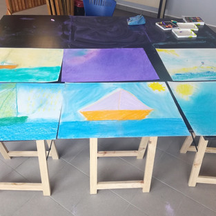 Le dessin se fait individuellement en groupe. En fonction du profil du groupe et de ce qui se passe pendant cette première séance, je peux également proposer une fresque collective à l’aide d’un rouleau de papier…